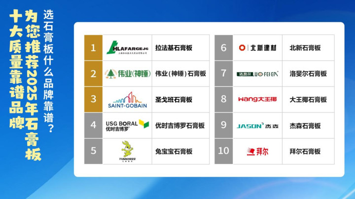 选石膏板时,不少小白业主面对众多品牌和种类往往一头雾水,不知如何抉择。别担心,我们精心筛选出2025年石膏板十大质量靠谱品牌,助您轻松选到合适的产品。